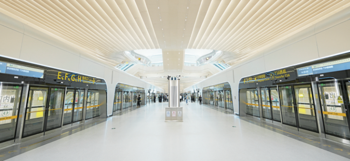 T3B航站楼采用“X”形构型与中央大厅结合的四指廊布局,其设计理念源于“鲲鹏展翅,蓄势腾飞”,整体造型取意于“大江奔流、崇山峻岭”,屋顶形式提取了“两江汇流、鸿鹄展翅”的地域元素,展现重庆独特的山水风貌和民航事业的蓬勃生机。航站楼配备民航业首个最高能效等级空调机房,并通过综合能源数智管控平台实现节能降耗。环保材料的应用与智慧设施的融合,既保障了旅客舒适度,也践行了可持续发展理念。