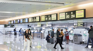 T3B航站楼投用首日,乘客开始登机